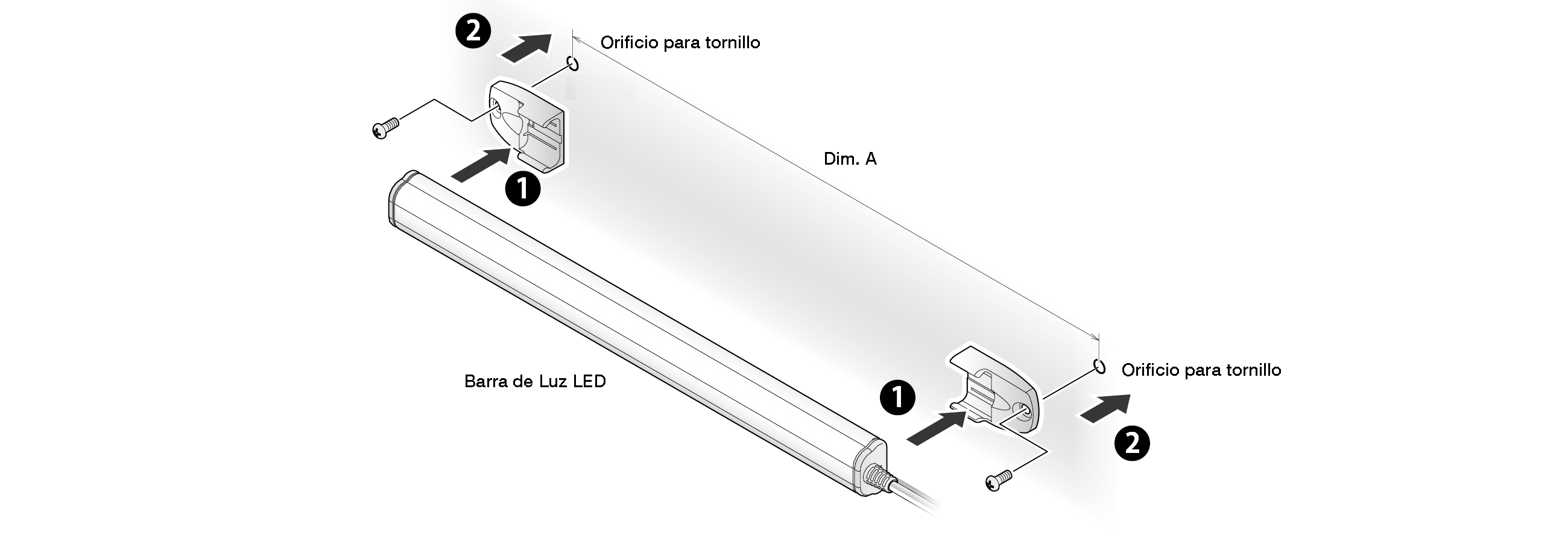 | Barra de Luz LED | Paso de montaje recomendado | Número de soportes | |