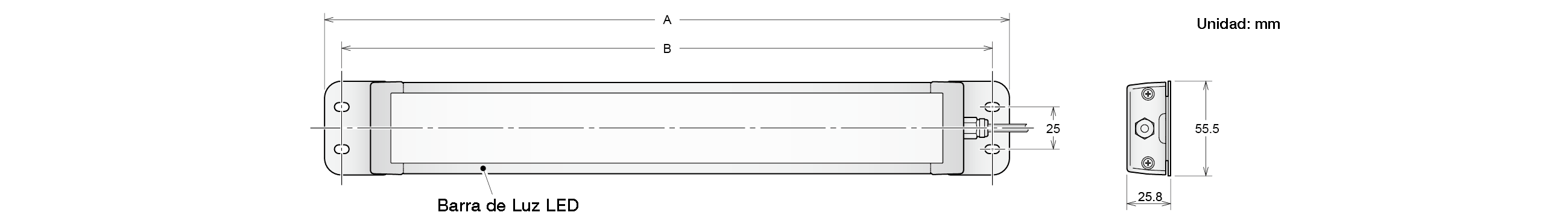 | Barra de Luz LED | Longitud total | Paso de montaje | Número de soportes |
